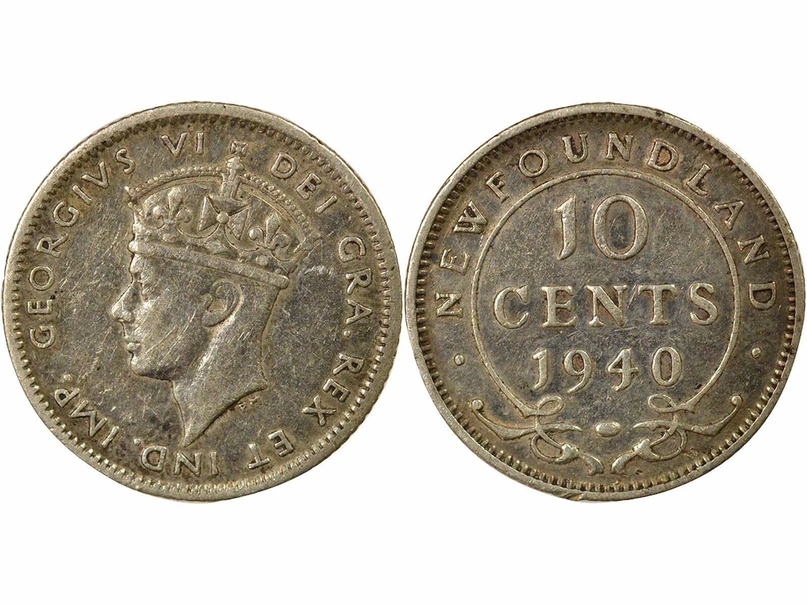 Pièce Canada Terre Neuve, George VI - 10 Cents Argent - 1940 Ottawa