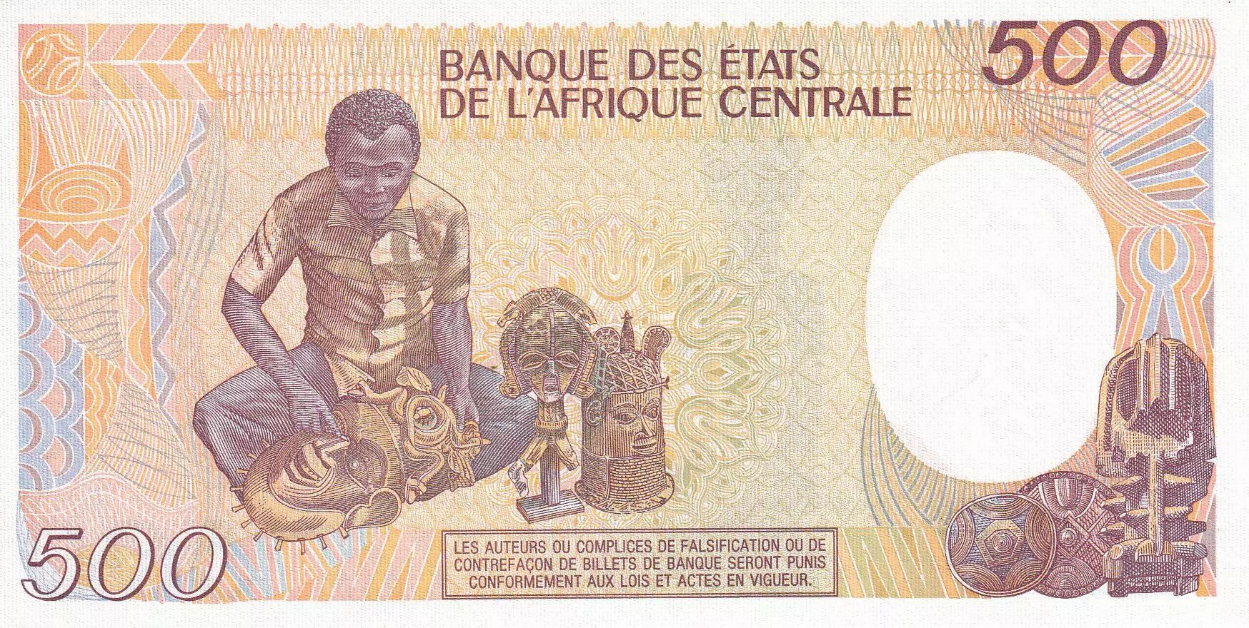 Banknote Central African Republic 500 Francs - Statuette et cruche - 1989 - Serial Q.03 - P.14d