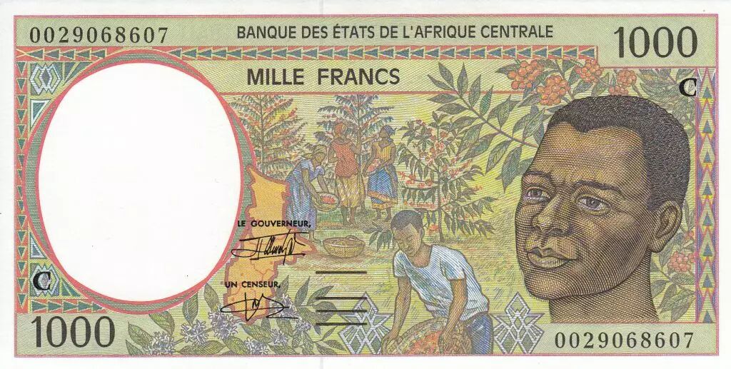 Banknote Central African States 1000 Francs Harvesting coffee beans - 2000 - Congo - UNC - P.102 Cg