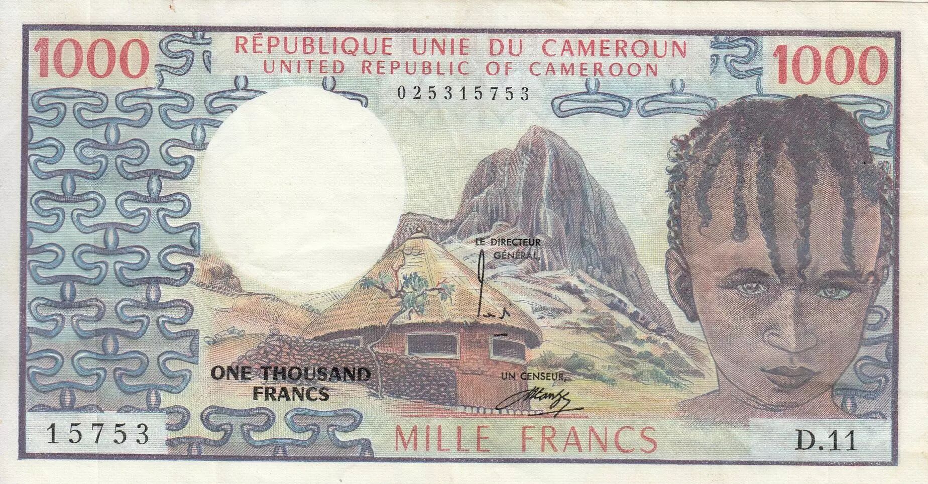Banknote Central African States 1000 Francs - Young boy - House - Mountain - 1974 - Serial D.11