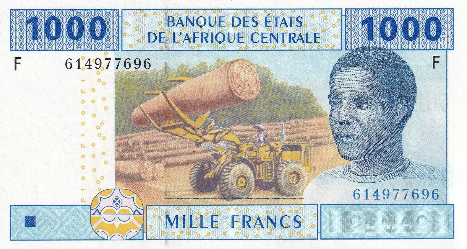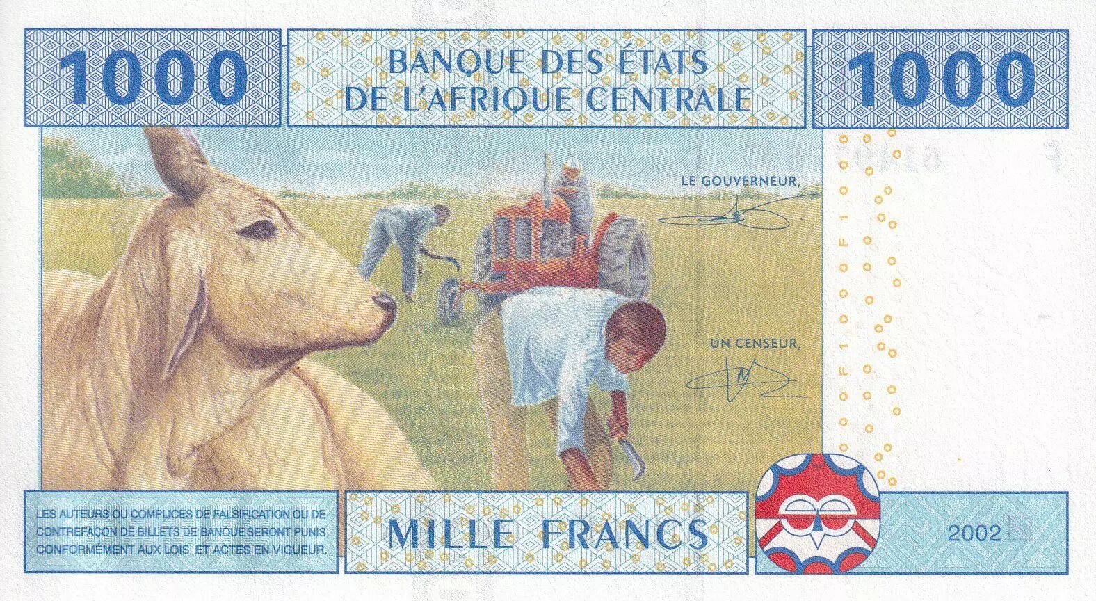 Home > > Central African States 1000 Francs - Young man, lumbering, harverst - Letter F (Centrafrica)