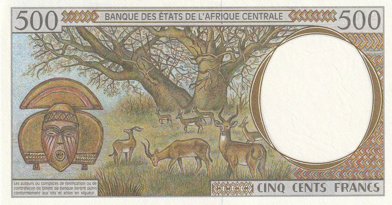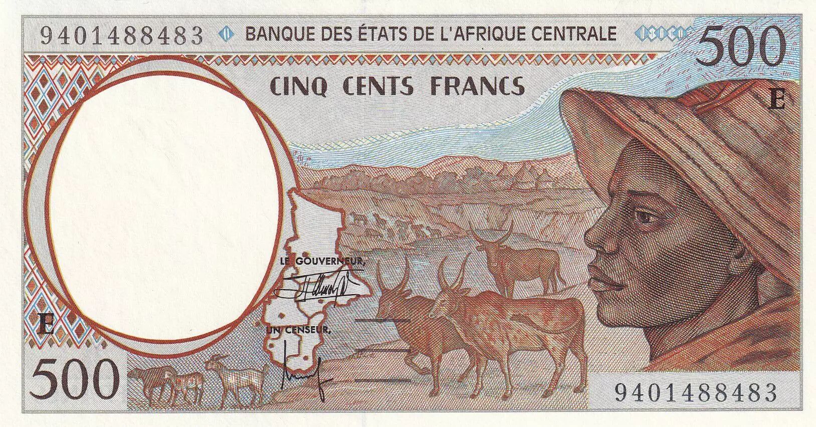 Banknote Central African States 500 Francs - Young man, ox, deers - 1994 - Letter E (Cameroon) - P.201Eb