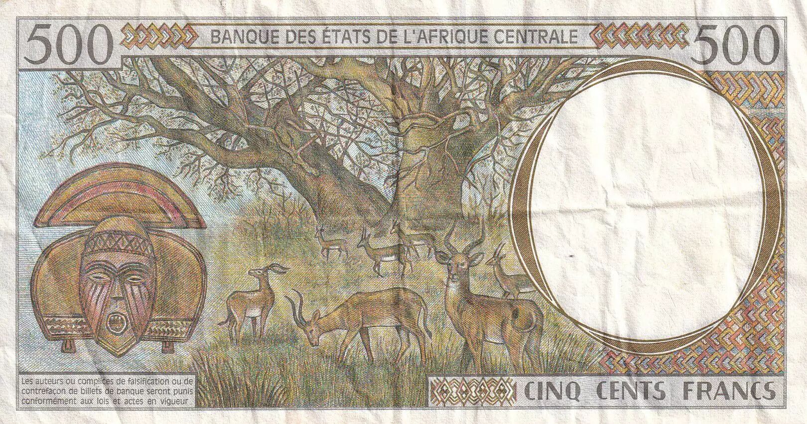 Banknote Central African States 500 Francs - Young man - Ox, deers - ND (1994) - F (Centrafrique) VF - P.301Fc