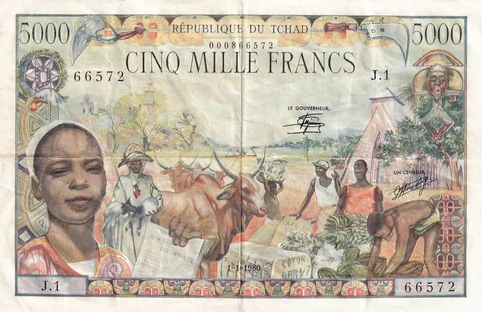 Home > > Central African States 5000 Francs - 1980 - Chad - Serial J.1 - VF - P.08