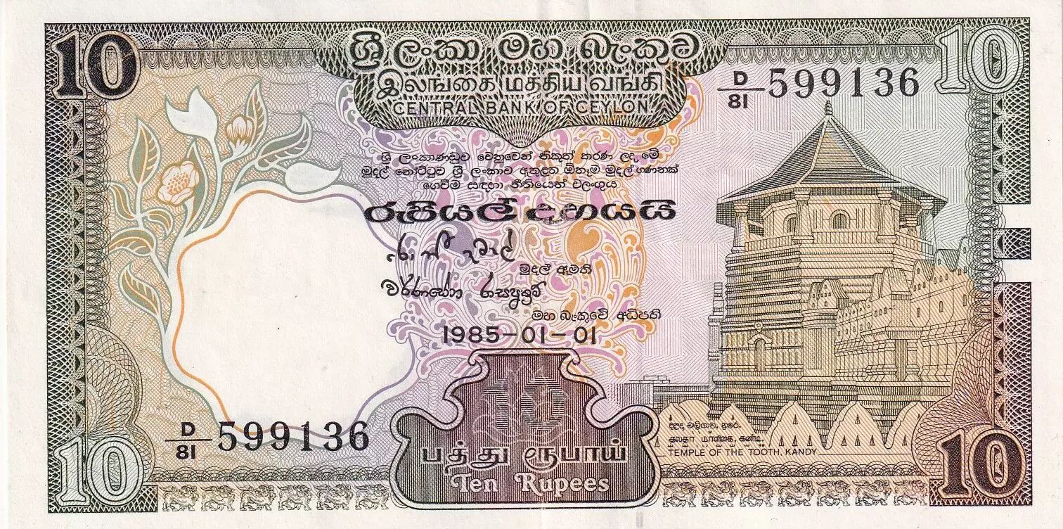 Accueil > Archivage > Ceylan 10 Rupees - Monument - 1985 - Série D.81 - P.92b