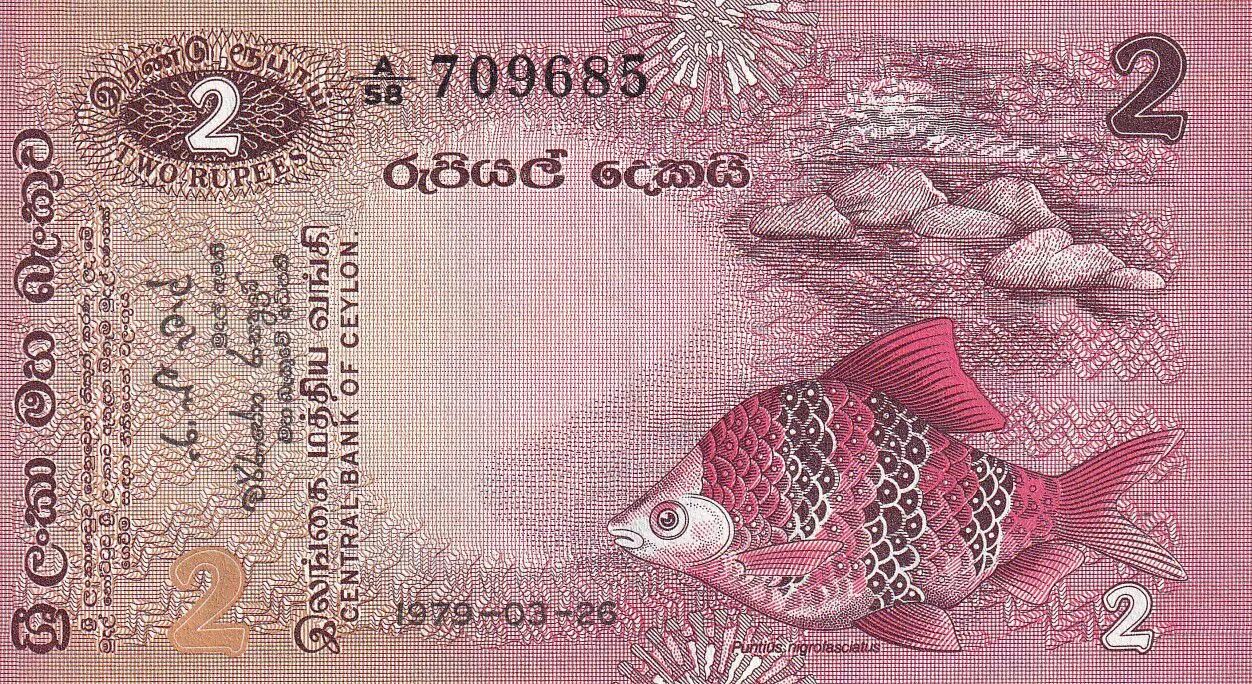 Billet Ceylan 2 Rupees - Poisson, papillon, serpent - 1979 - P.NEUF - P.83