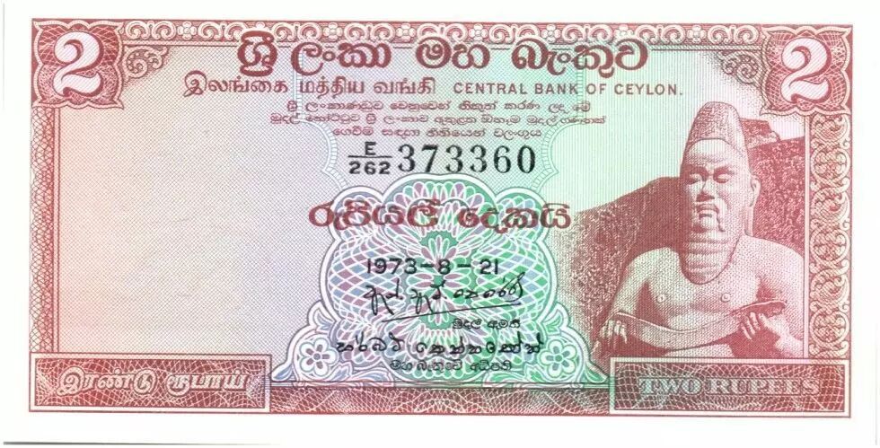 Billet Ceylan, 2 Rupees Roi Parakkrama - 1973 - P.72 c