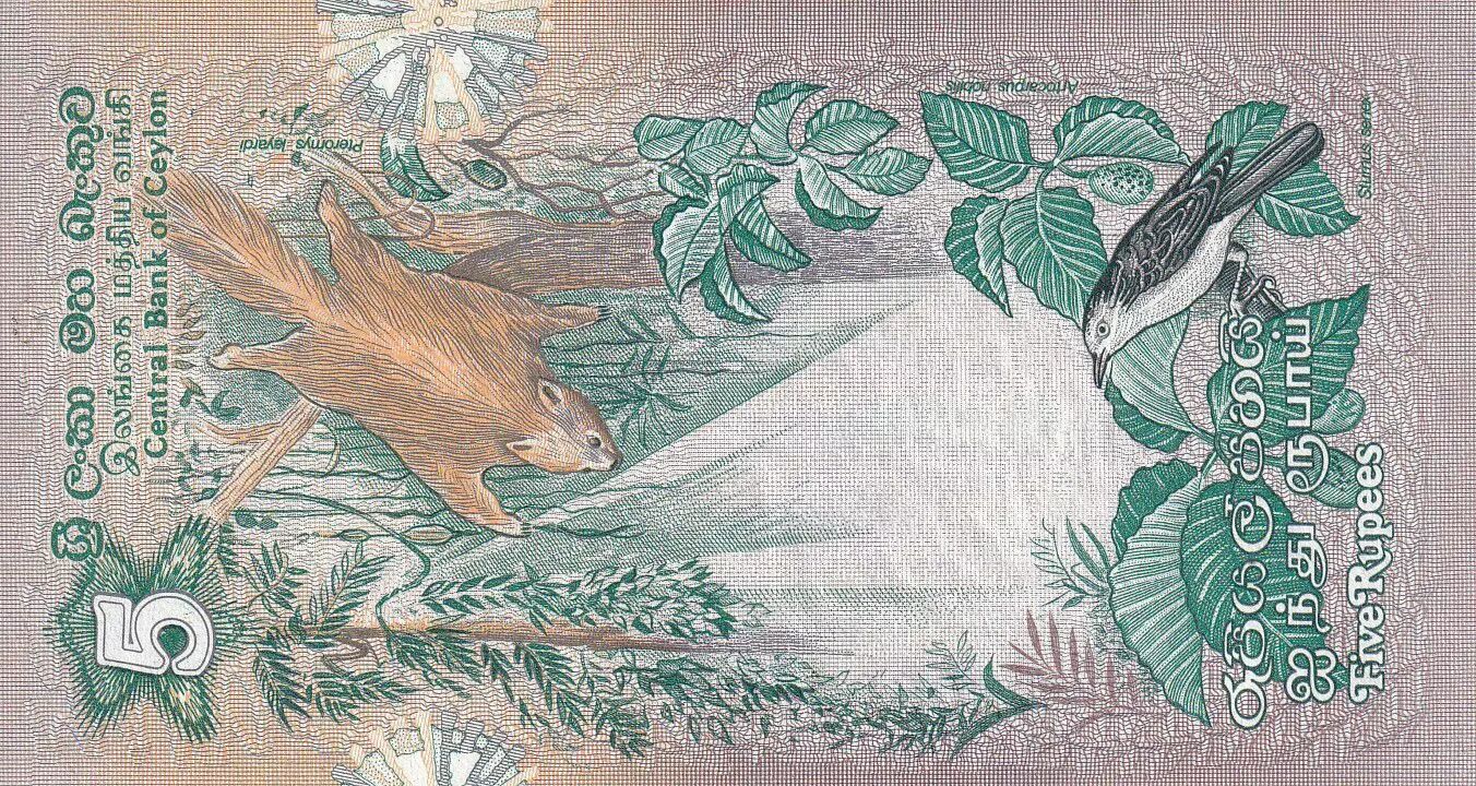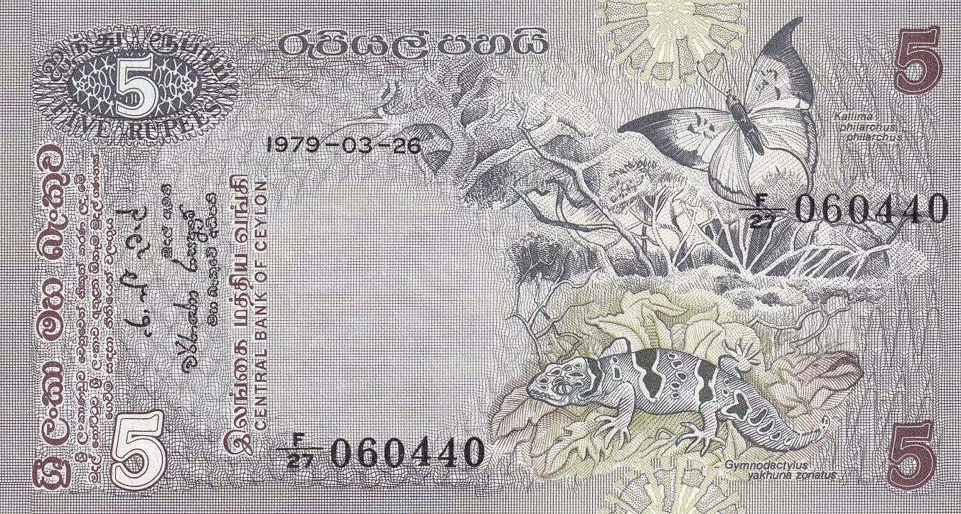 Billet Ceylan 5 Rupees - Papillon, lézard oiseau - 1979 - P.NEUF - P.84