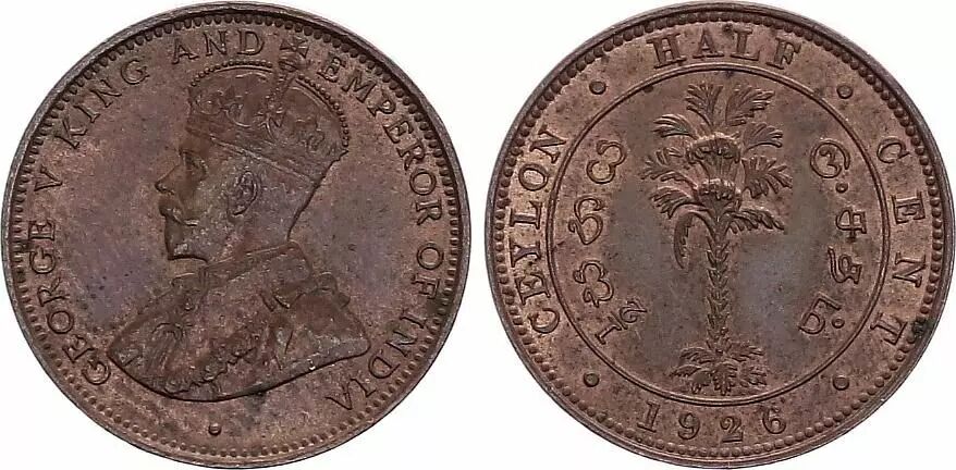 Home > World Coins > Asian Coins > Ceylon > Ceylon 1/2 Cent Georges V - 1926 - XF to AU - KM.106
