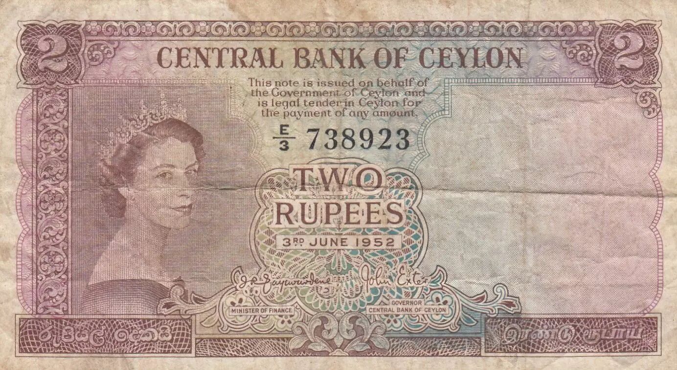 Banknote Ceylon 2 Rupees - Elizabeth II - 03-06-1952 - Serial E.3
