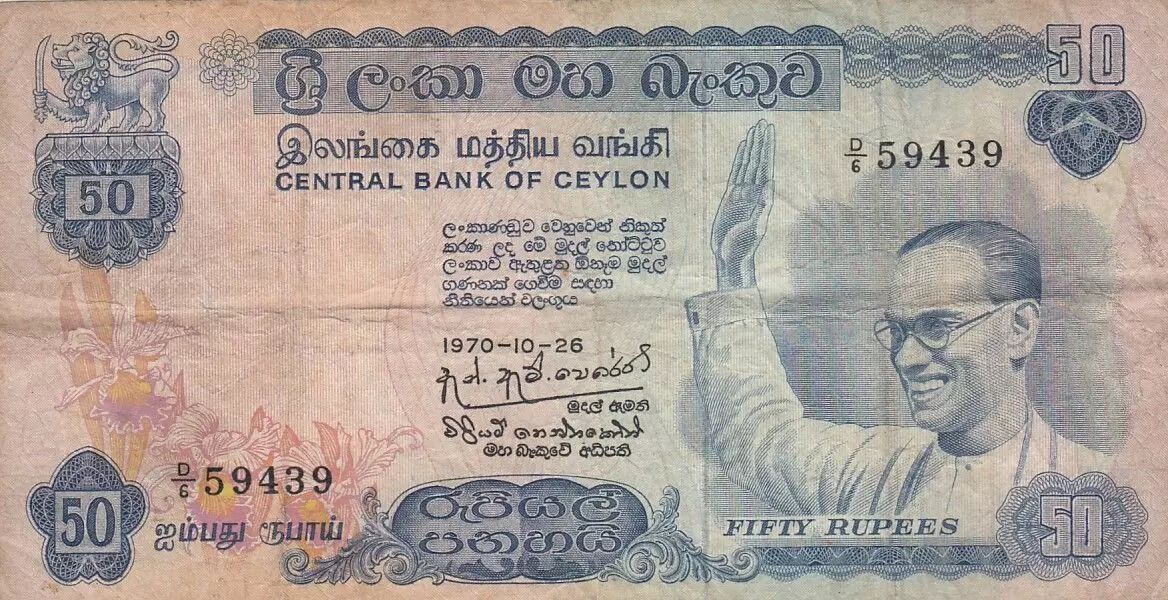 Home > > Ceylon 50 Rupees - Pres. Bandaranaike - Monument - 1970