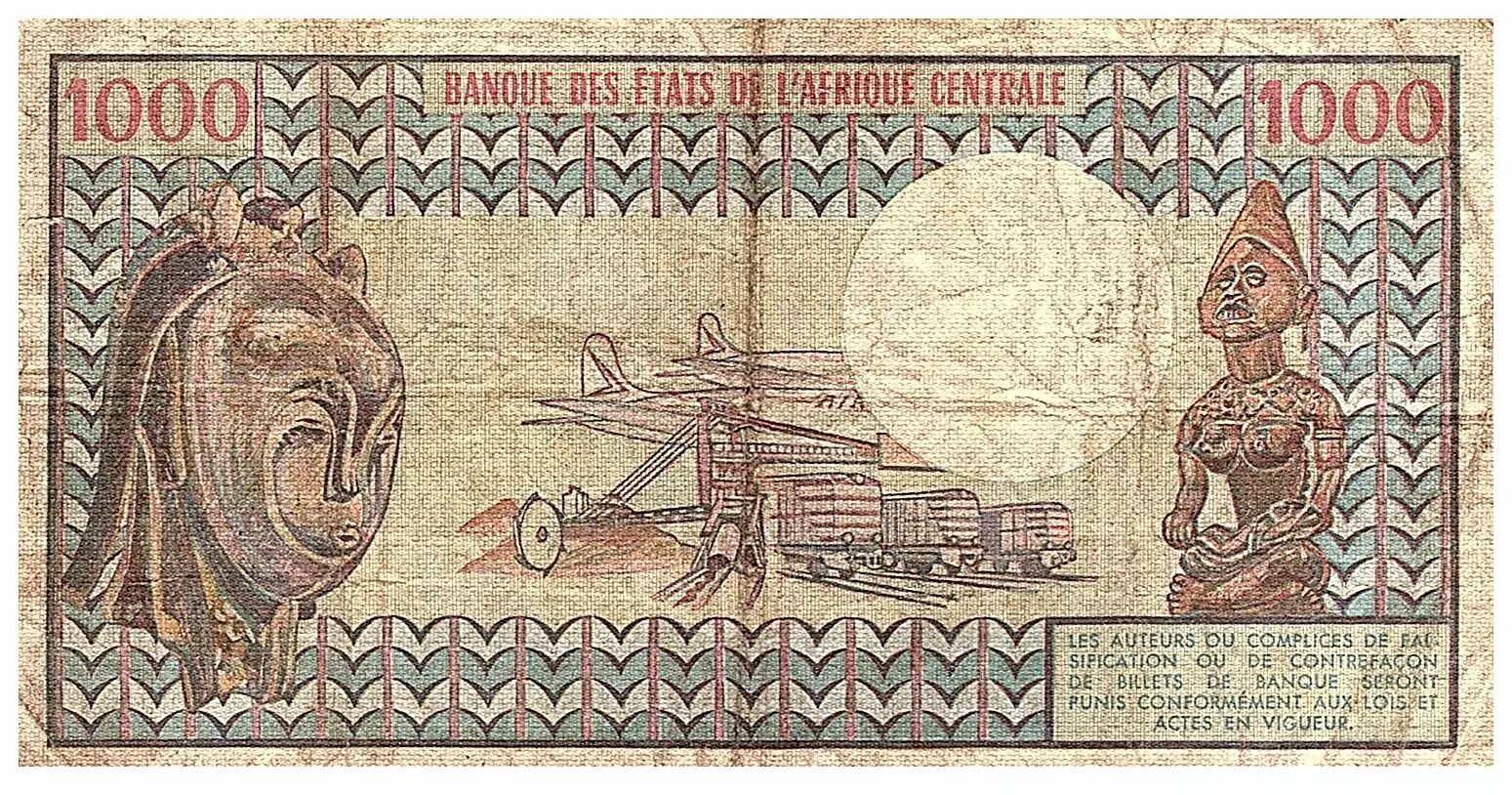 Home > > Chad 1000 Francs - Animals - Transport - Mask - 01-06-1980 - Serial G.12 - P.7