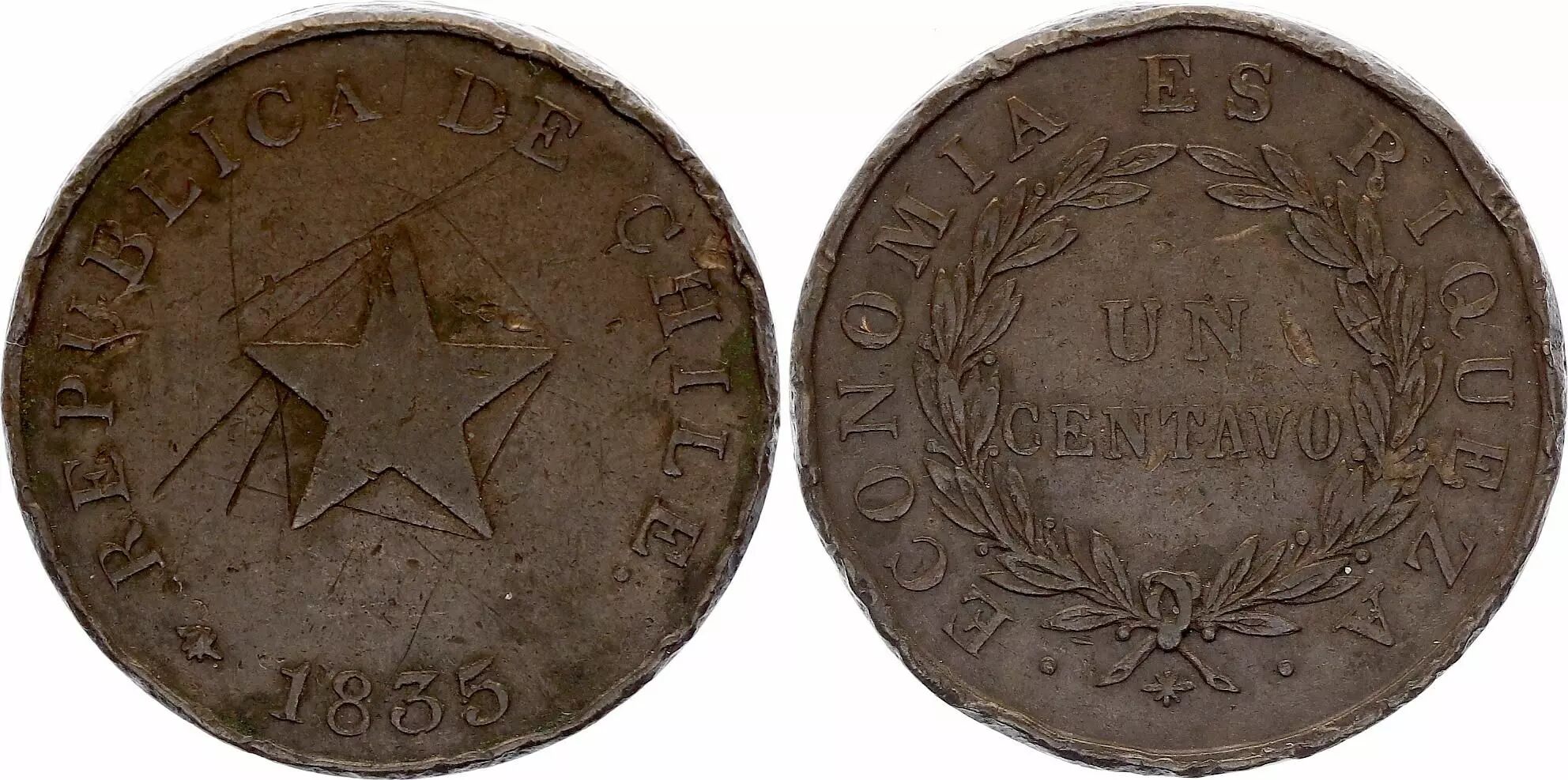 Home > > Chile 1 Centavo - 1835 - F to VF - KM.115