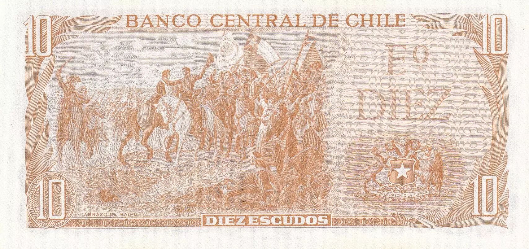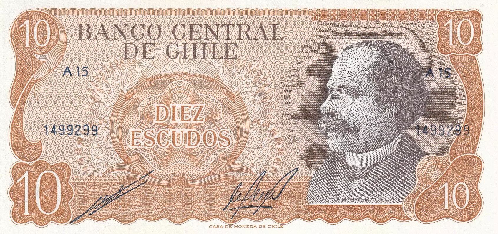Home > > Chile 10 Escudos - J.M. Balmaceda - ND (1970) - Serial A.15 - P.143