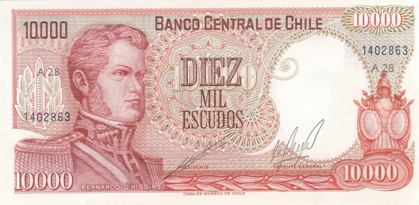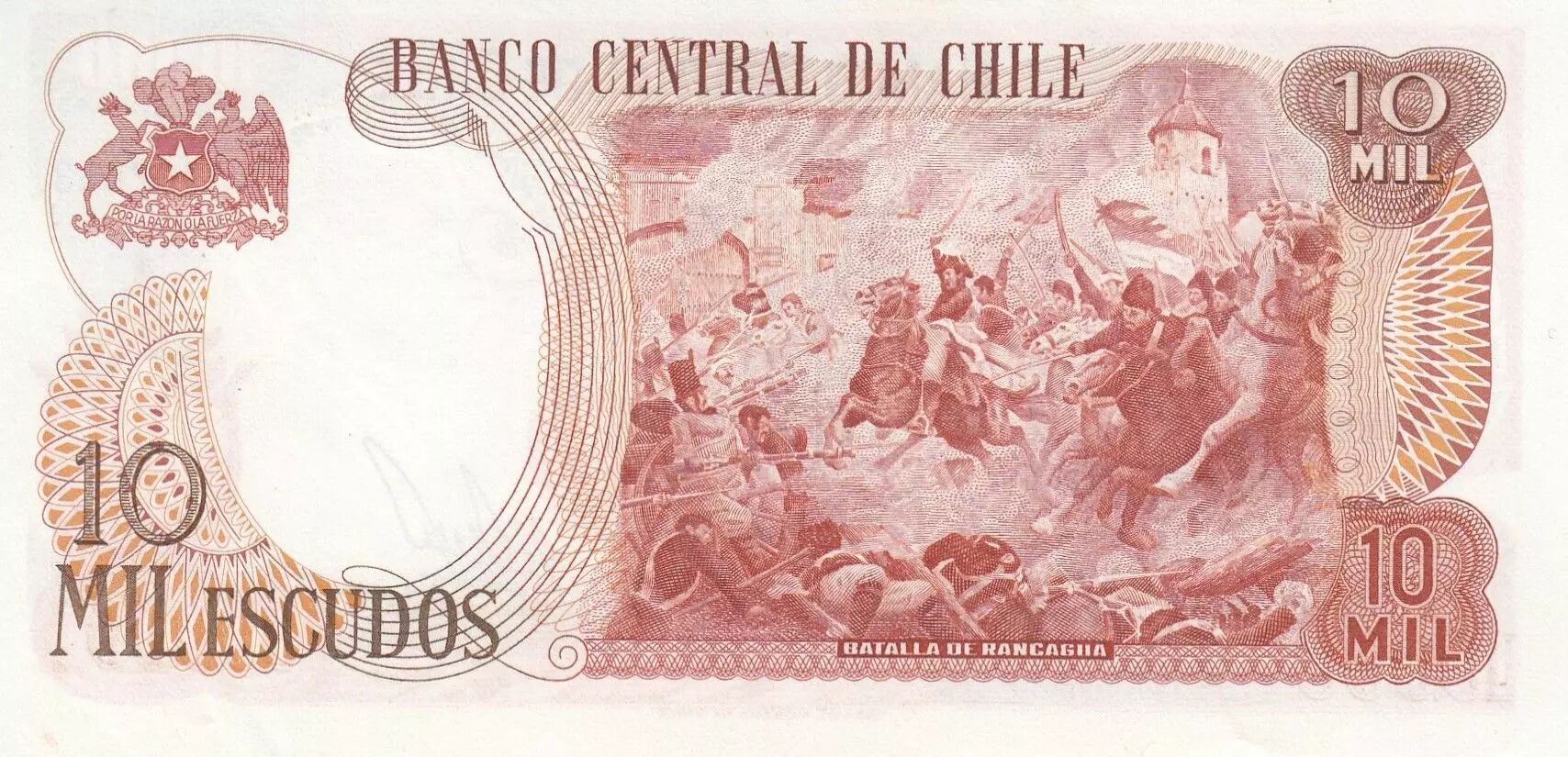 The 10,000 escudo banknote offers a glimpse into Chilean history and culture, reflecting important aspects of its heritage through its illustrations and iconography.