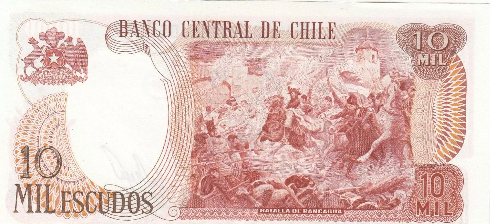 The 10,000 Escudos banknote is printed on high-quality paper with special inks to ensure its durability and resistance to wear. The dimensions of the banknote are standard for Chilean banknotes of that era. The colors used are bright and contrasting, which enhances the readability and visual appeal of the banknote.