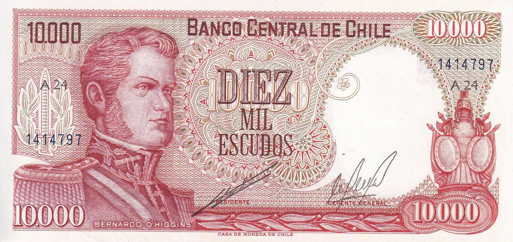 Billet Chili 10000 Escudos - O'Higgins - Bataille de Rancagua - Série A.24 - P.148