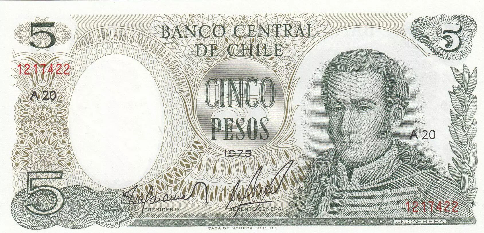 Accueil > Archivage > Chili 5 Pesos J.M. Carrera - 1975 - P.149a - Neuf