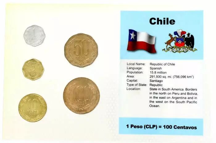 Pièce Chili Blister 5 monnaies CHILI (1 à 100 pesos)