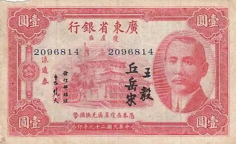 Banknote China 1 dollar - Sun Yat-Sen - Number 2096814 - 1940