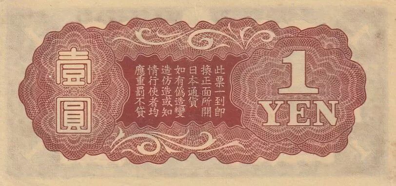 Banknote China 1 Yen Chine - Japanese occupation - 1940 - Onagadori - Bloc 15
