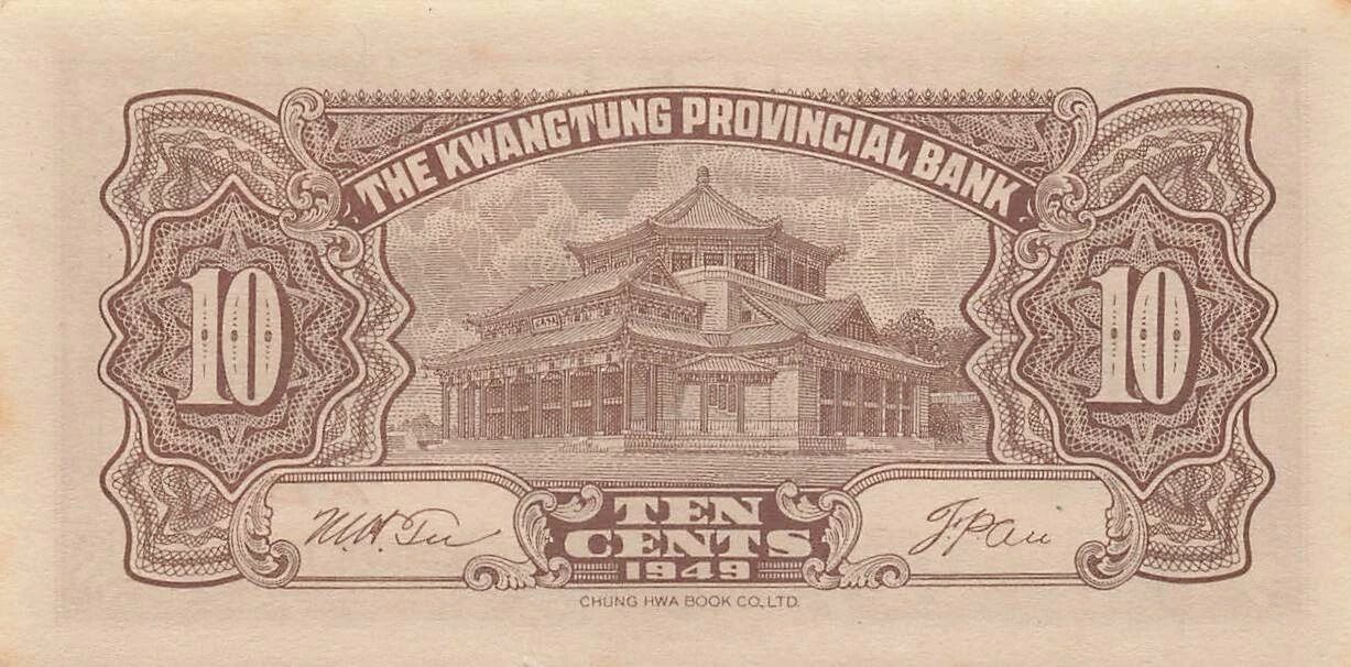 Home > World Banknotes > Asian Banknotes > China > China 10 Cents - Kwangtung - ND (1949) - P.S2454