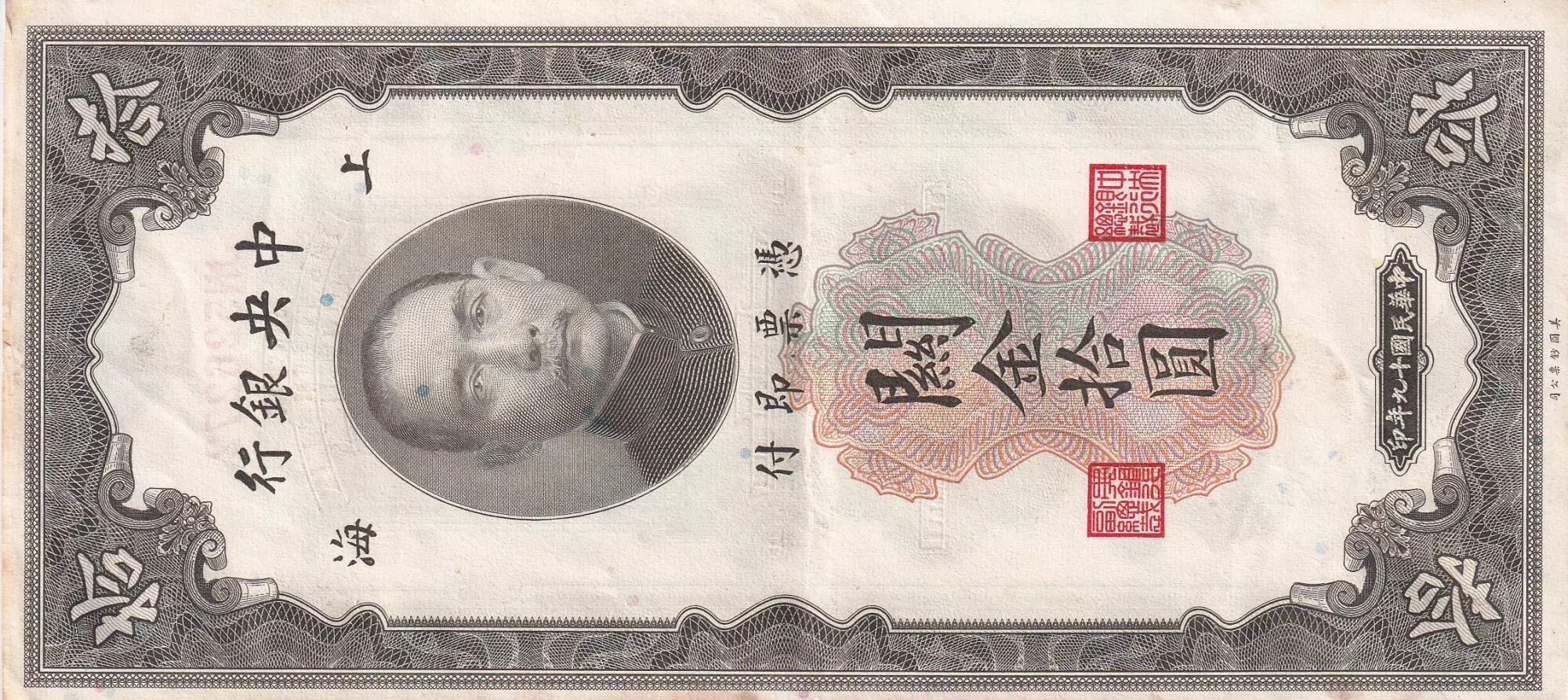 Home > > China 10 Customs Gold Unit - Sun Yat-Sen - 1930 - XF - P.327d