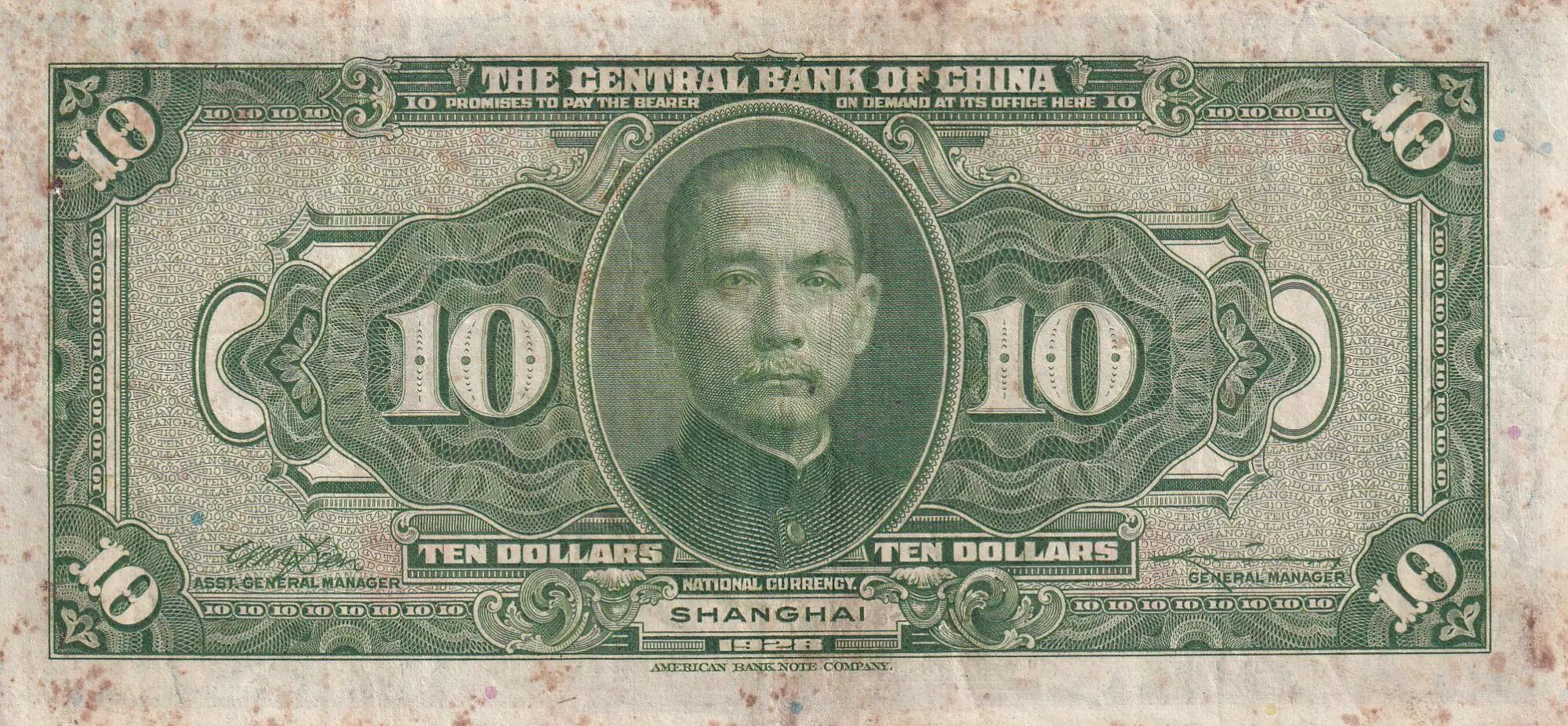 Banknote China 10 Dollars - Sun Yat -Sen 1928 - Serial SX - F - P.197g