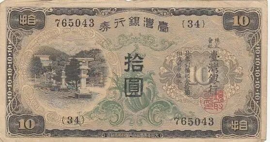 Banknote China 10 yen - Taiwan - Japanese occupation - 1944 - Block 34