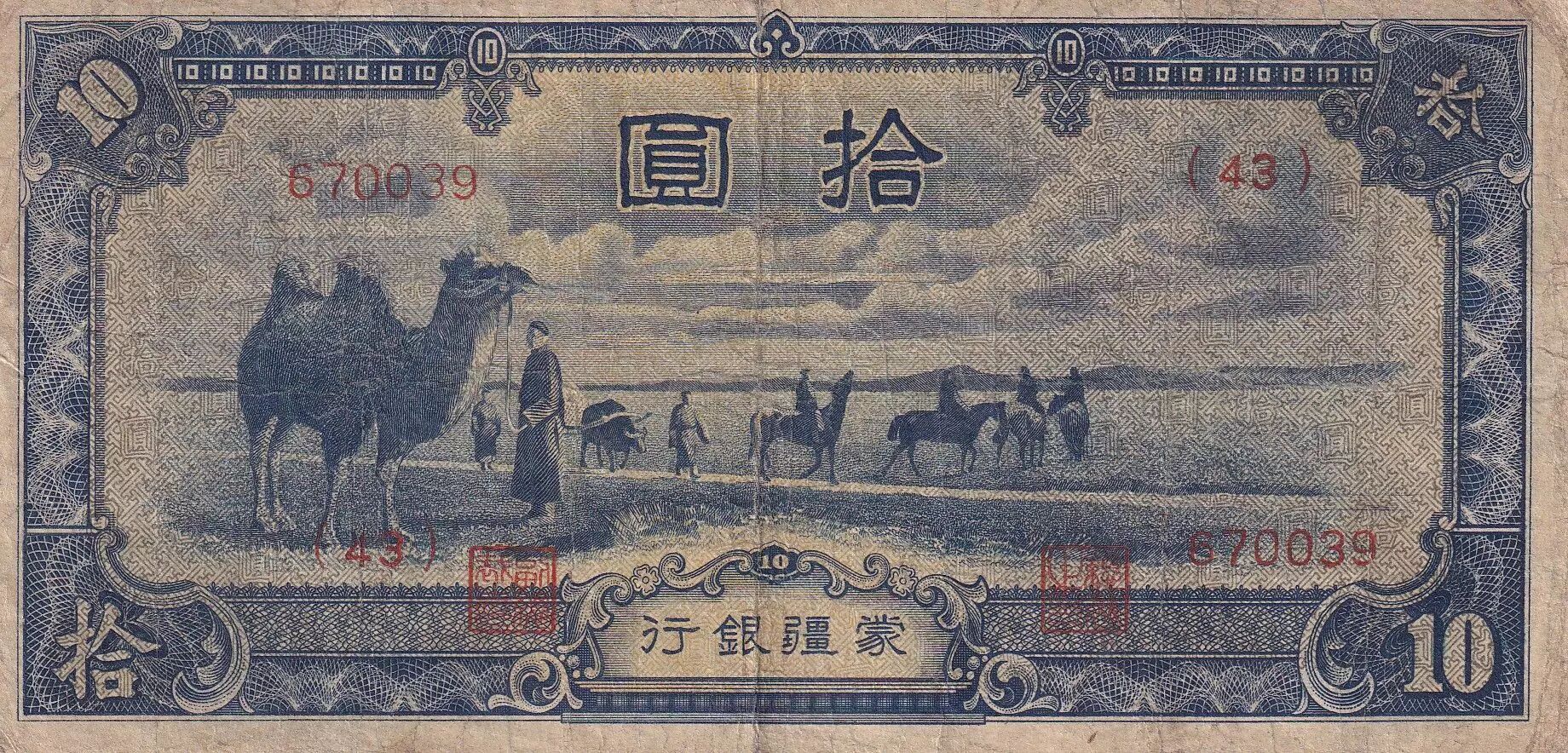 Home > > China 10 Yuan - Mengchiang Bank - ND (1944) - Serial 43 - P.J108b