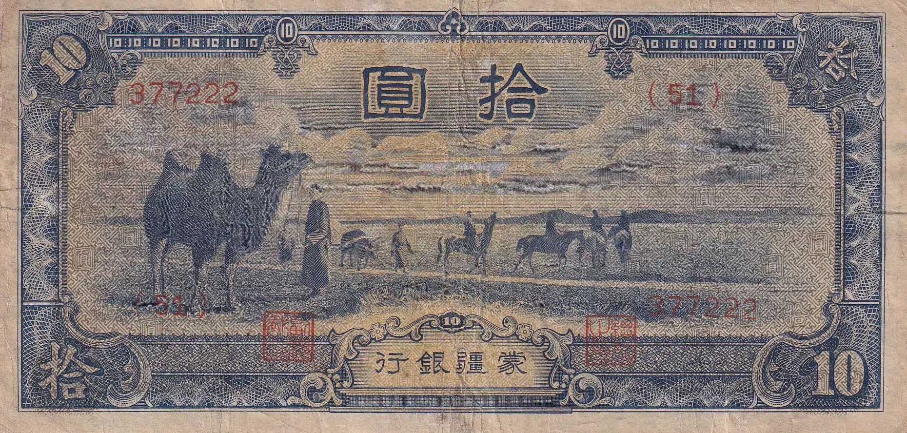 Home > > China 10 Yuan - Mengchiang Bank - ND (1944) - Serial 51 - P.J108b
