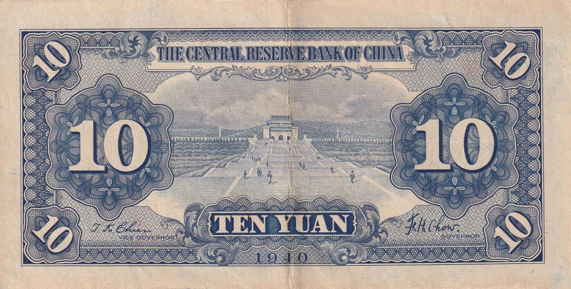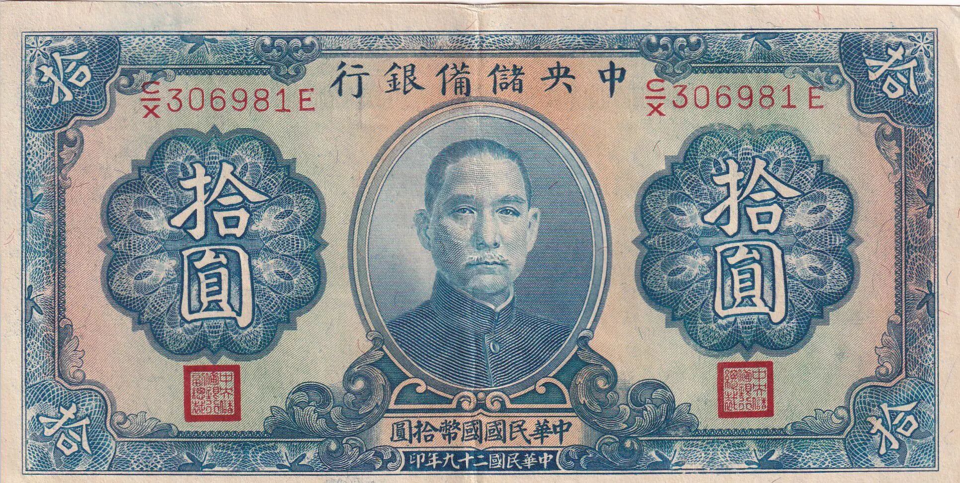 Banknote China 10 Yuan - SYS - 1940 - Serial CX - P.J12h