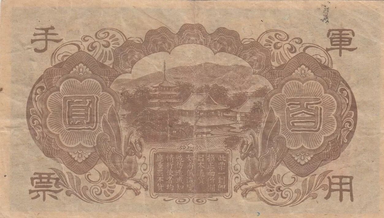 Banknote China 100 Yen China - Japanese occupation - Shotoku-taishi - Horyuji temple - ND (1945) - Block 1