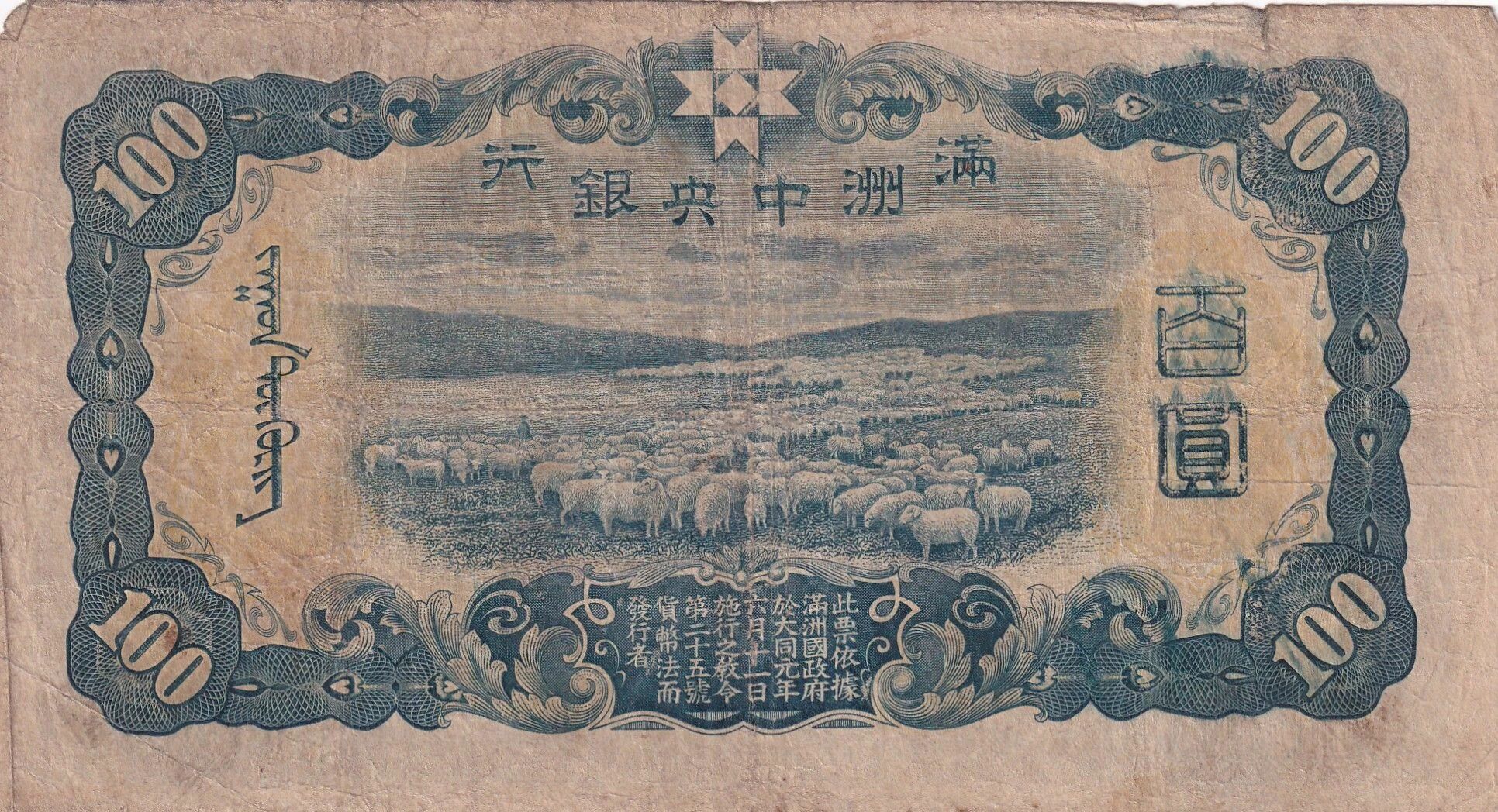 The back of the banknote features an illustration of sheep. The iconography of sheep can have various symbolic meanings in Chinese culture, often associated with prosperity and good fortune. The design of the back complements the overall aesthetic of the banknote, incorporating ornamental motifs and inscriptions in Chinese characters.