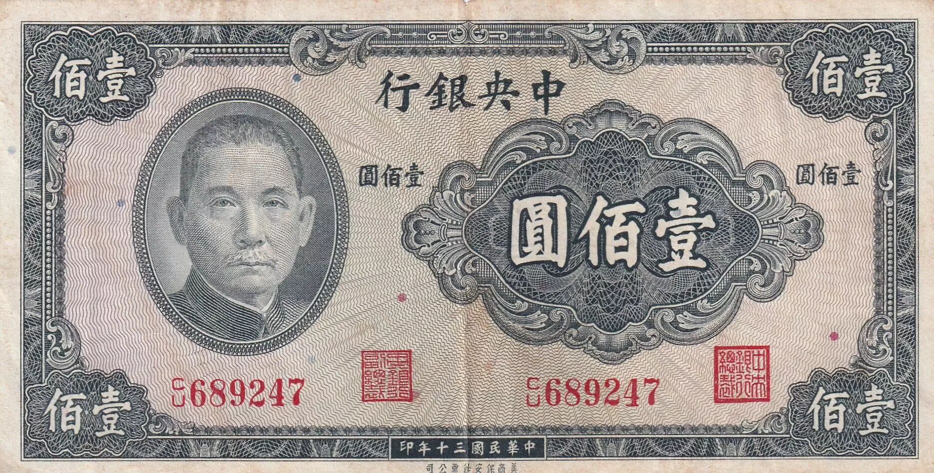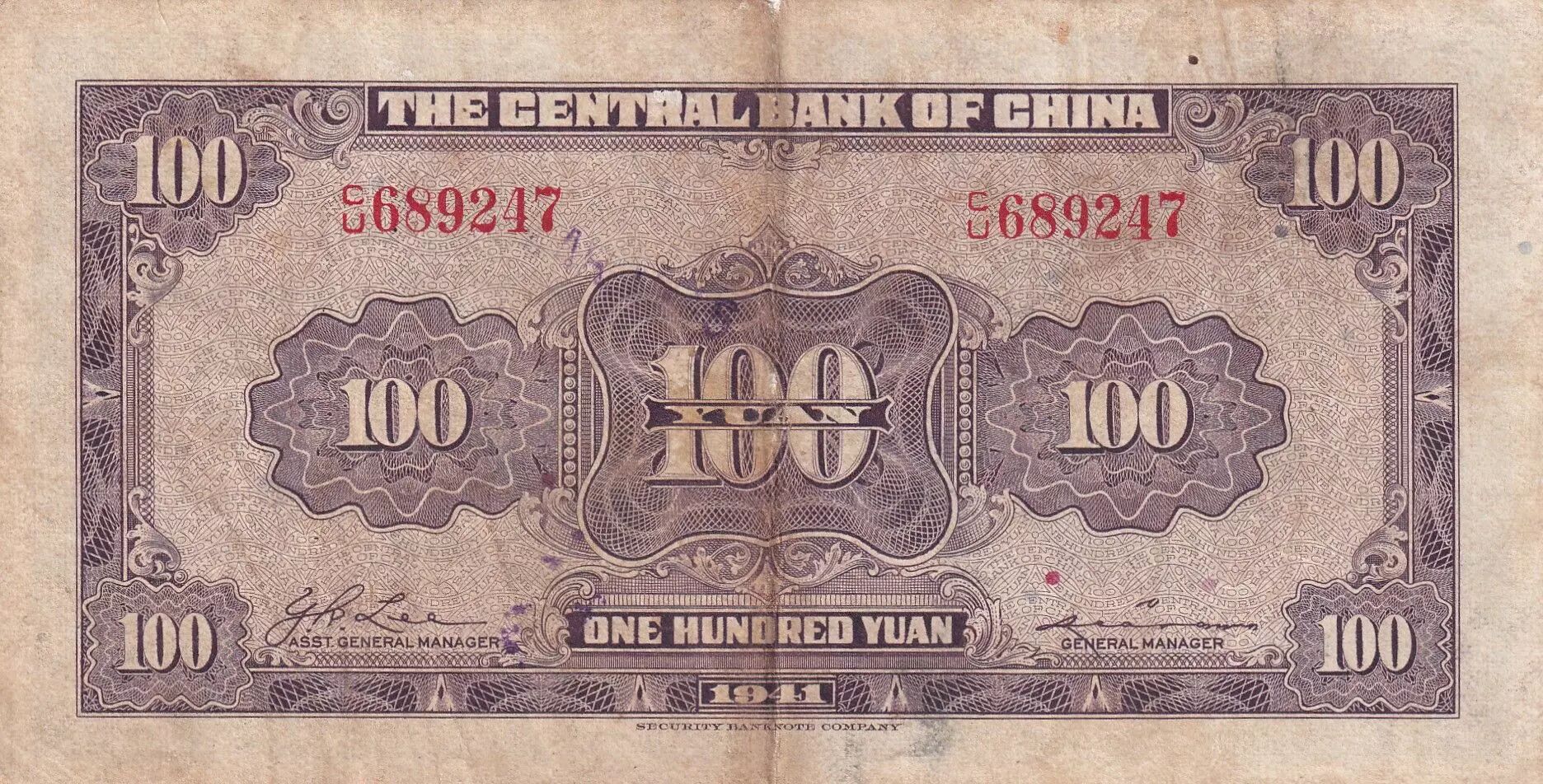 Home > > China 100 Yuan, Port. SYS - 1941 - Serial C/U