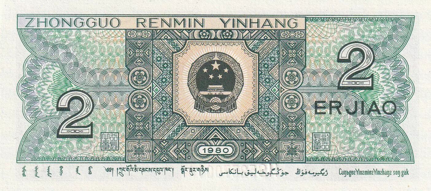 Banknote China 2 Jiao - Women - Arms - 1980 - Serial HS - P.882