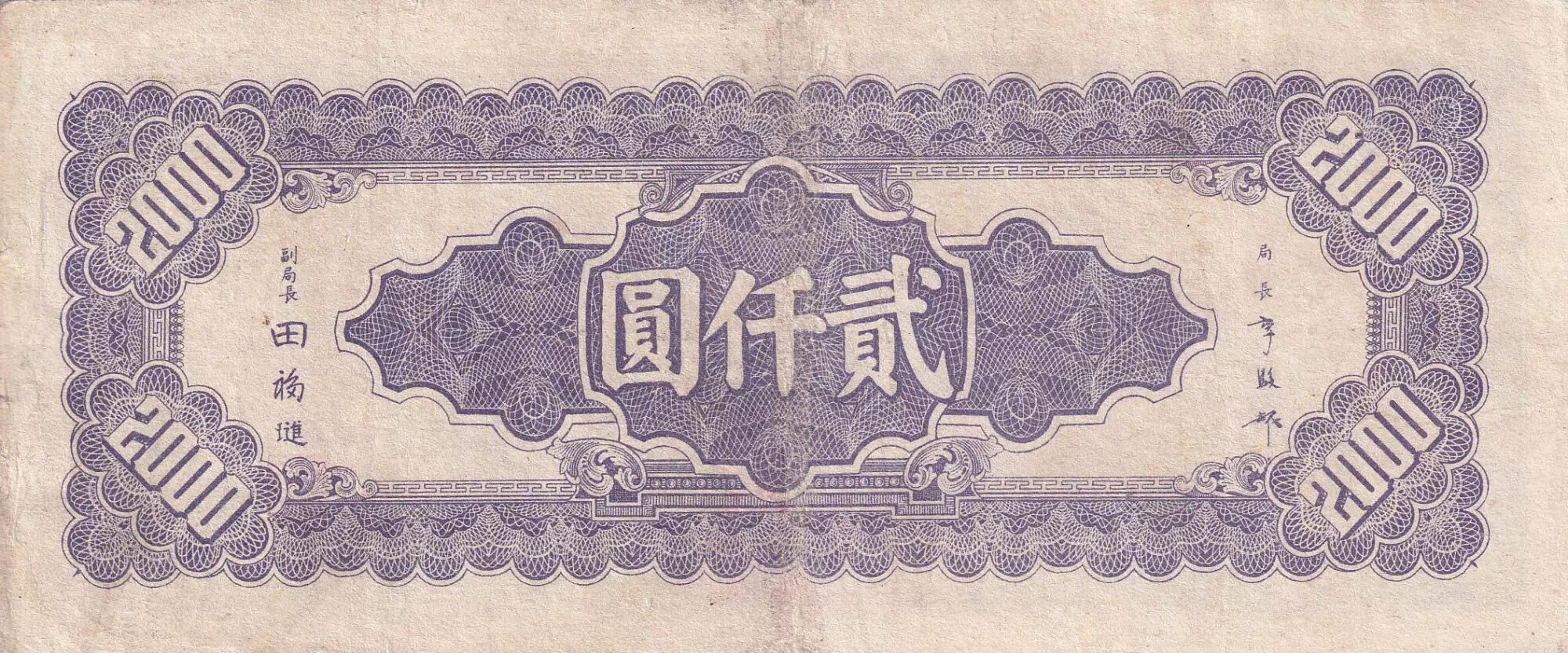 Banknote China 2000 Yuan - Portrait SYS - 1945 - Serial BJ - P.301a