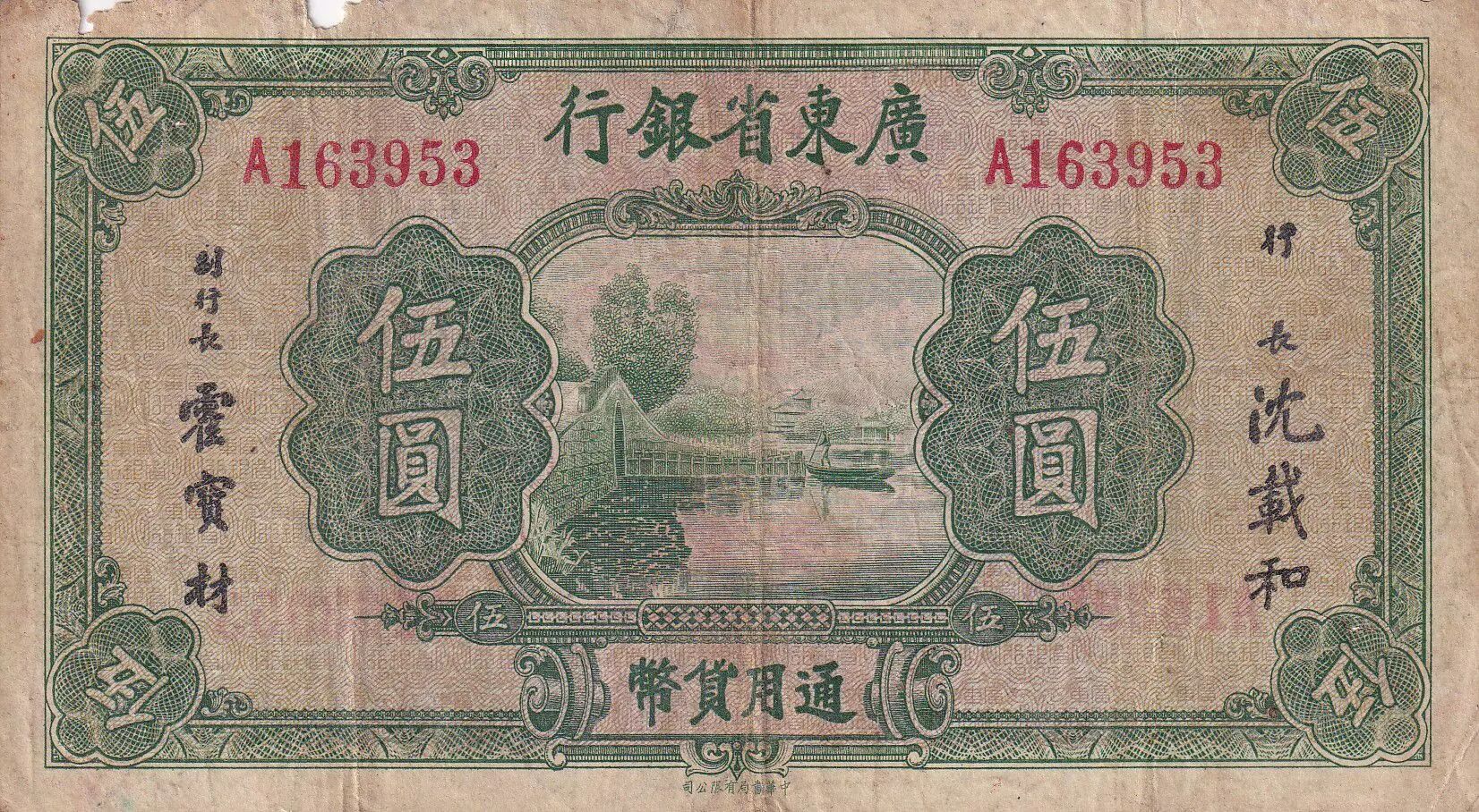 Banknote China 5 Dollars - Kwangtung - 1936 - VG+