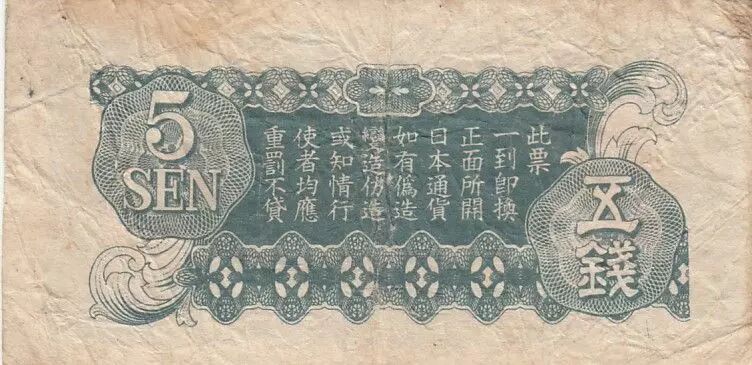 Banknote China 5 Sen - Japanese occupation - Dragon - 1940 - M.9