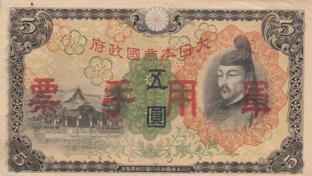 Home > World Banknotes > Asian Banknotes > China > China 5 Yen China - Japanese occupation - Kitano Shrine - 1938