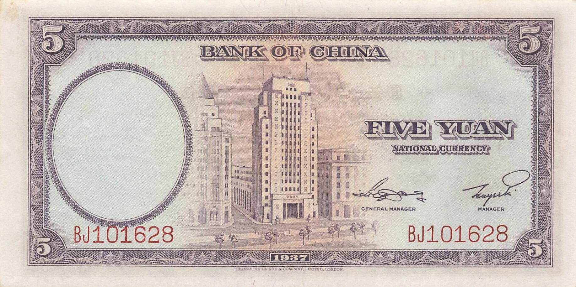 Home > World Banknotes > Asian Banknotes > China > China 5 Yuan - 1937 - P.80