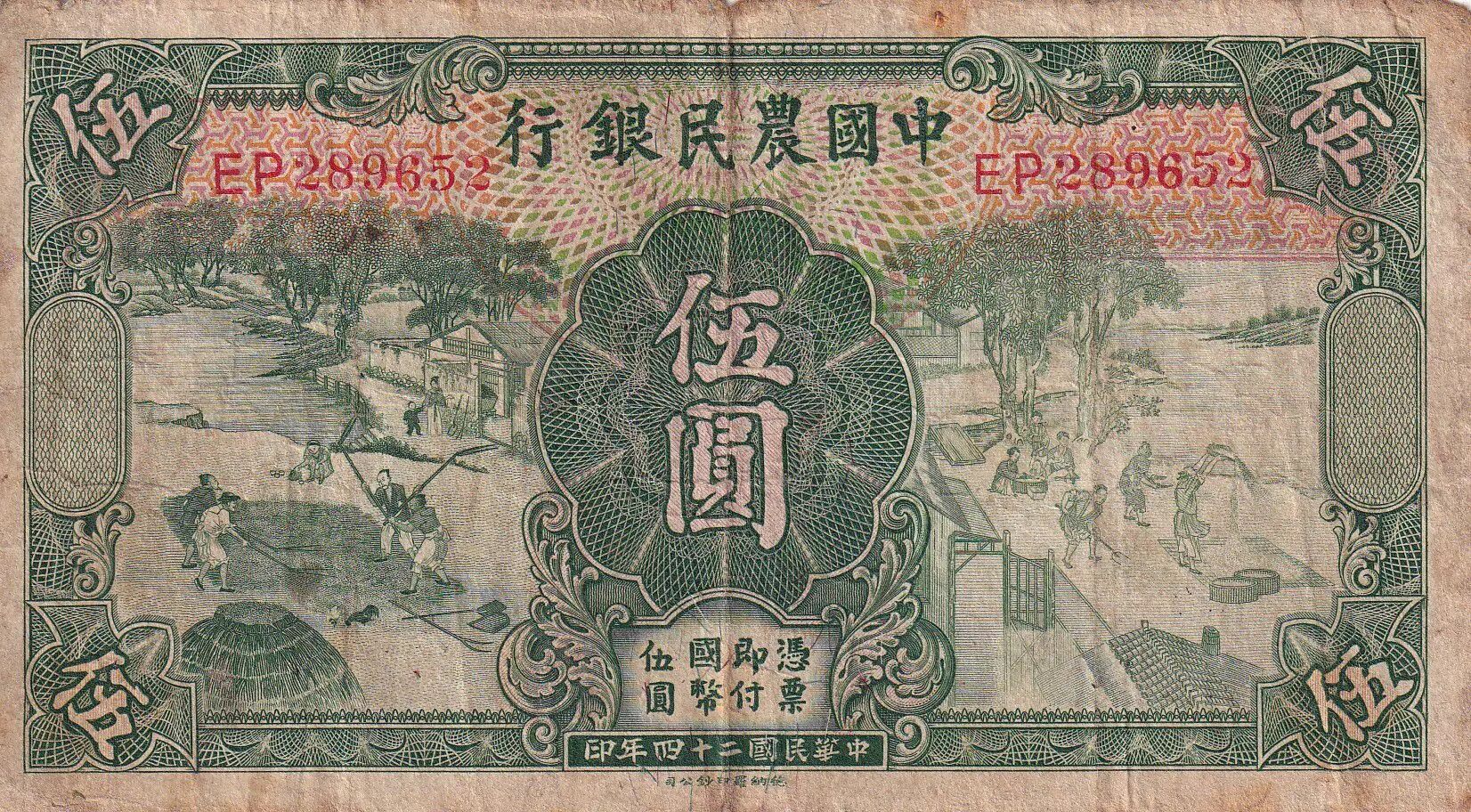 Home > > China 5 Yuan - The Farmers Bank of China - ND - (1935) - P.458a