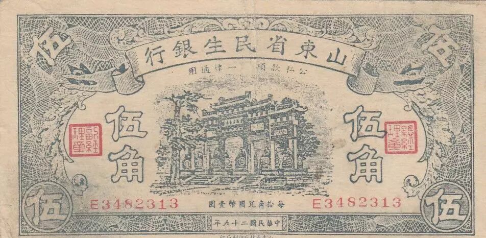 Home > > China 50 Cents - Shantung Min Sheng Bank - Serial E34 - 1940