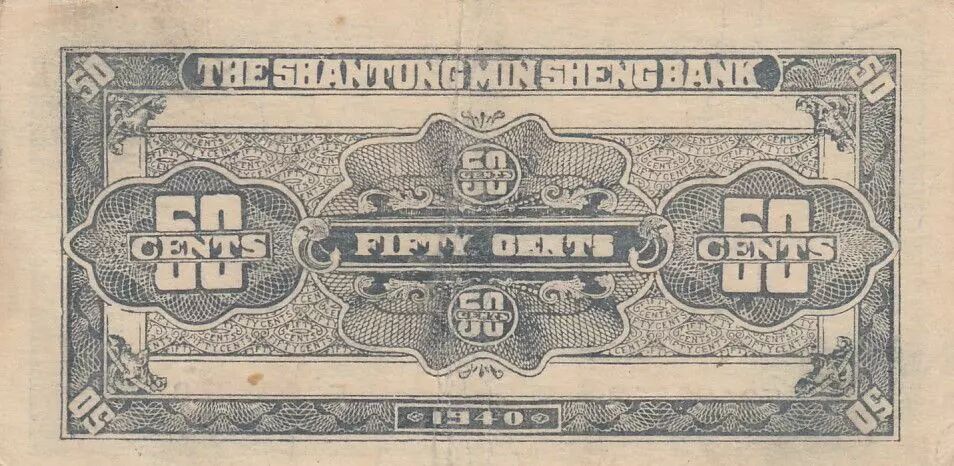 Banknote China 50 Cents - Shantung Min Sheng Bank - Serial E34 - 1940