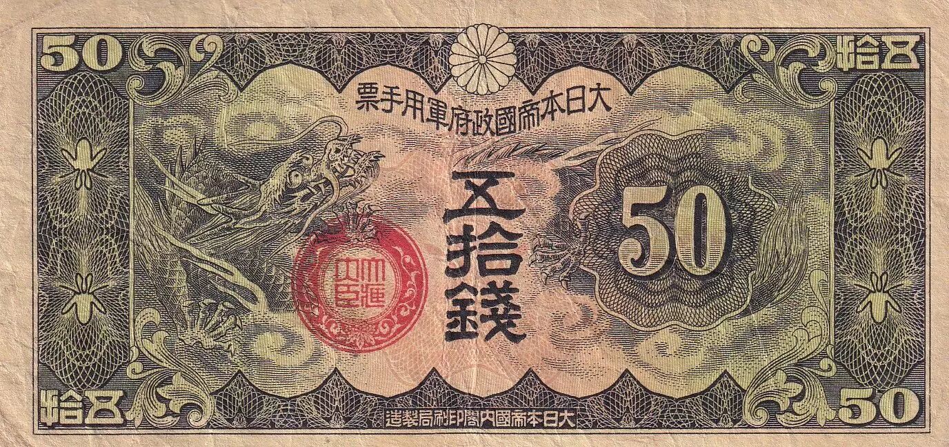 Home > World Banknotes > Asian Banknotes > China > China 50 Sen - Dragon - 1938