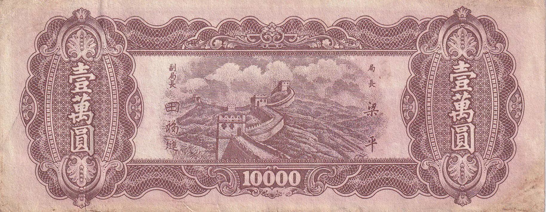 Billet Chine 10 000 Yuan - Grande muraille de Chine - 1948 - P.386