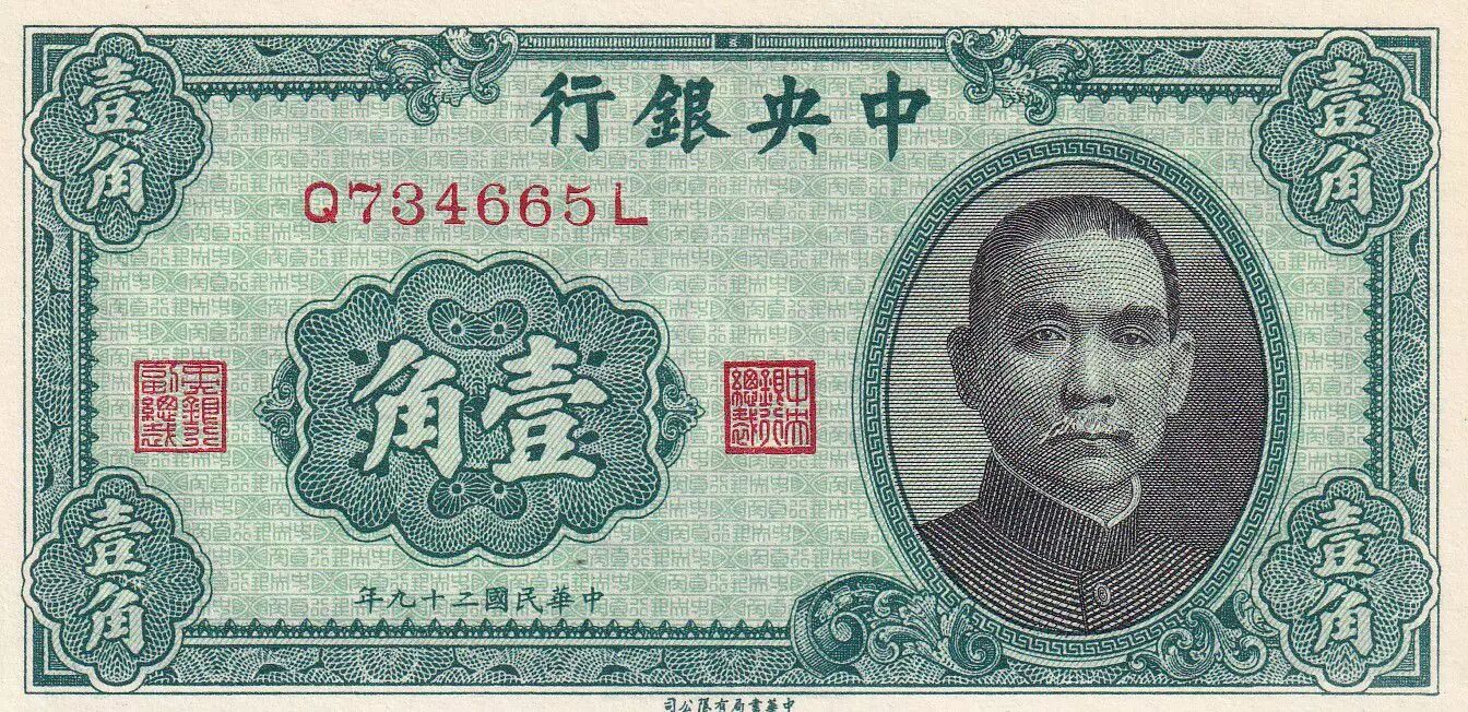 Billet Chine 10 Cents - Sun Yat Sen - 1940 - P.226