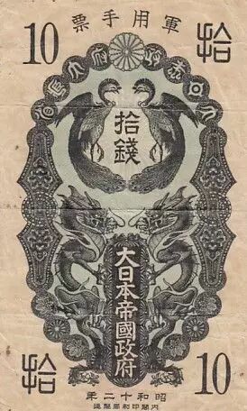 Billet Chine 10 Sen - Onagadori - Yr.12 (1937) - Occupation Japonaise