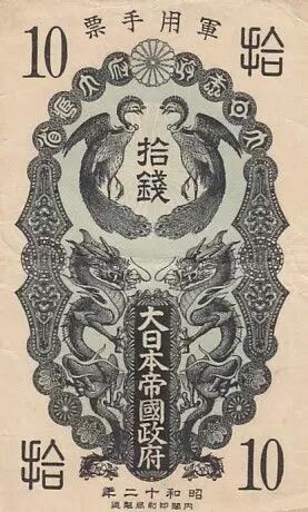 Billet Chine 10 Sen - Onagadori - Yr.12 (1937) - Occupation Japonaise