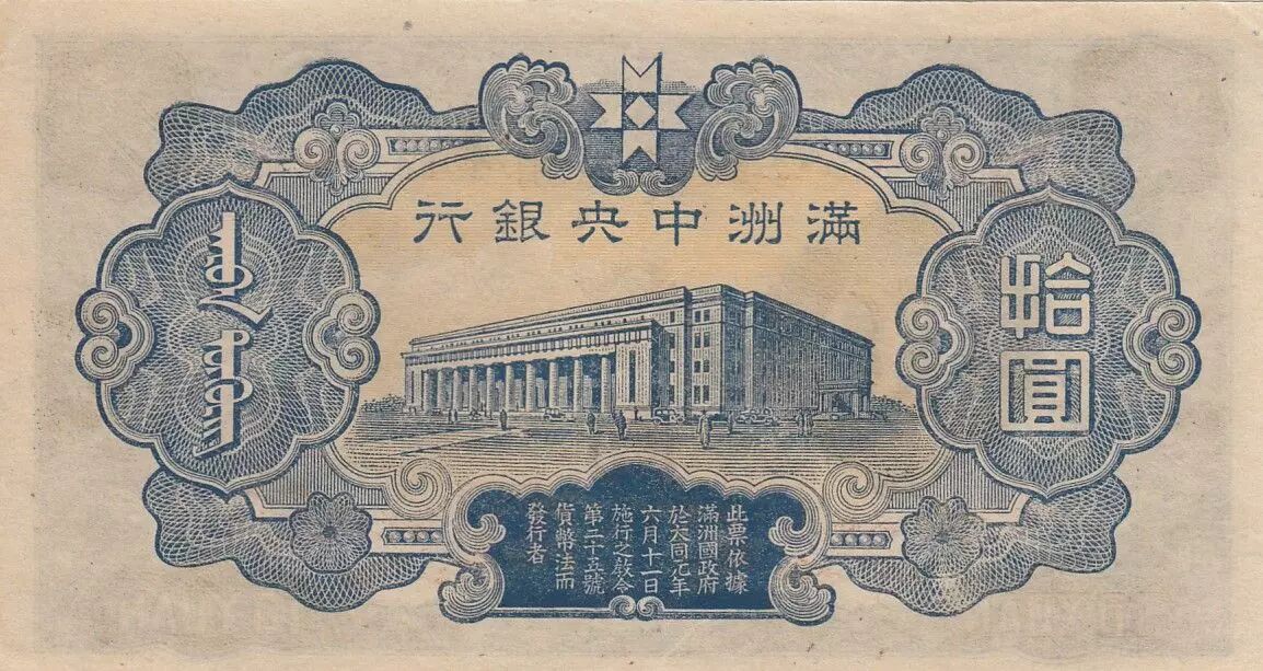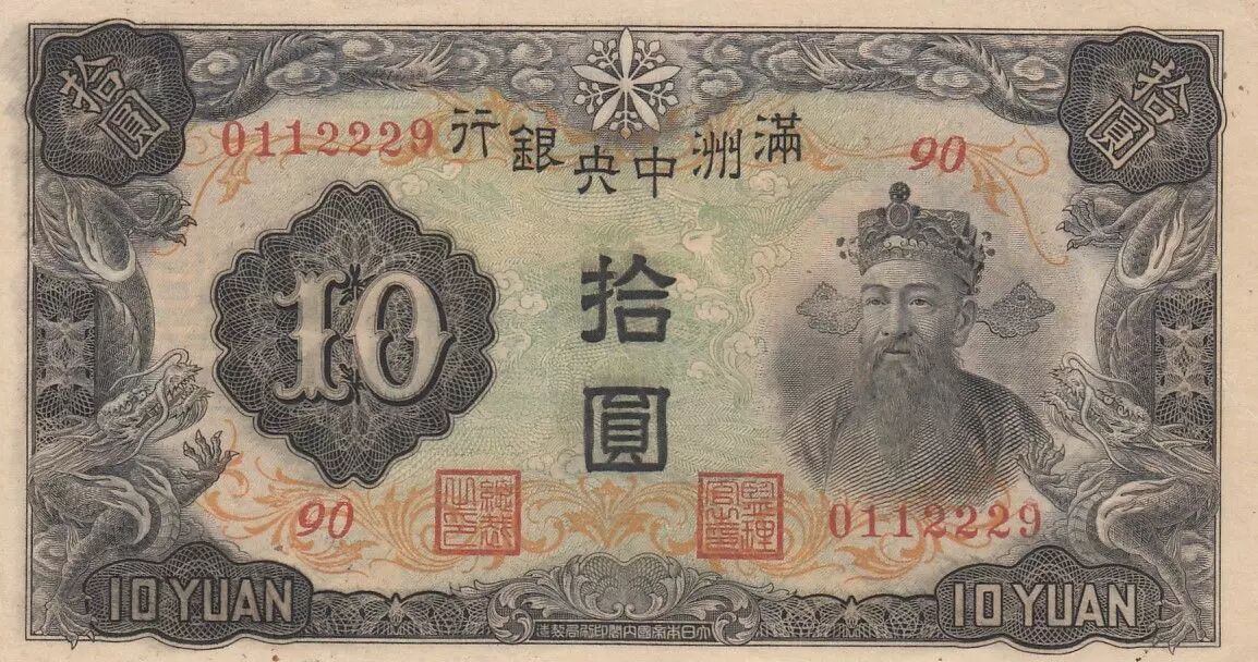 Billet Chine 10 Yuan - Manchukuo - Empereur T'ien - 7 numéros - 1937